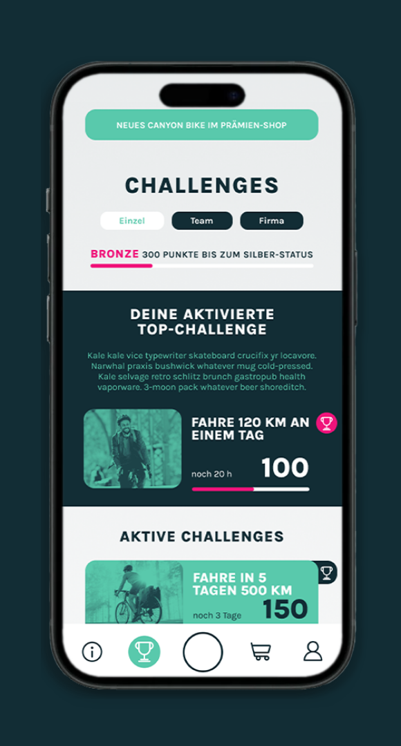 Auf Dich warten spannende Einzel- und Teamchallenges, mit denen das tägliche Radeln gleich noch mehr Spaß macht. Und natürlich wächst mit jeder gemeisterten Challenge das persönliche Punktekonto!